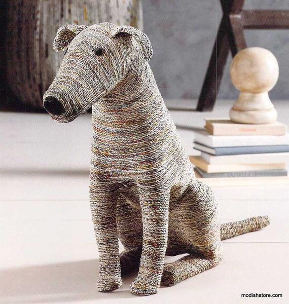 Recycled Rover is all dressed up for the holidays in playful antlers fashioned from colorful cotton fabric woven over wire. The fabric scraps are overruns from the garment industry. Each paper pooch is created using hand-twisted and woven recycled newspaper. This pooch does not require any walks or housetraining.