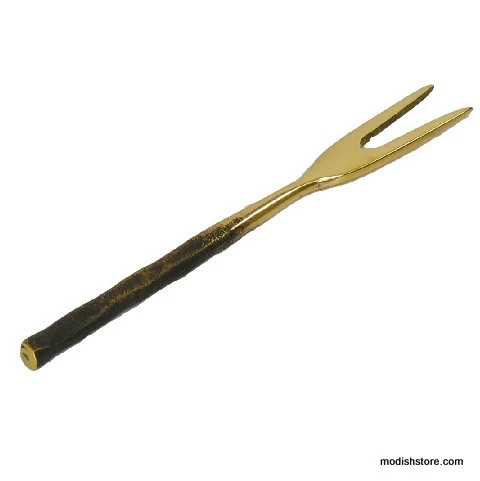 Cocktail cutlery and serving pieces in sleek modern profiles are formed from solid brass with polished heads and slender blackened handles. Shiny polished brass implements with slim contrasting handles, have graceful profiles. Hand wash only. Check the Roost Serafina Collection for related products.