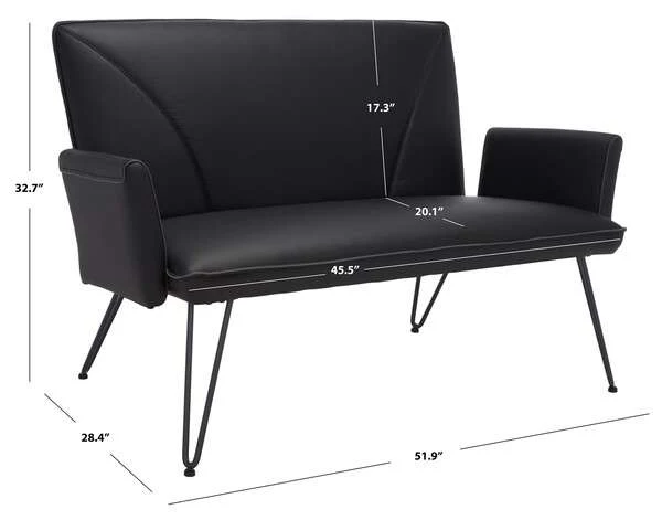 Safavieh Johannes Mid Century Modern Leather Settee - Black