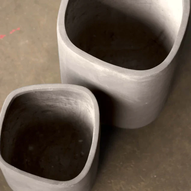 This striking and durable outdoor and indoor lightweight planter set is produced using a blend of clay and fiberglass. For outdoor use with winter environments, proper drainage holes are required and can be easily drilled. Color blotches, exposed air bubbles, mold lines and chipped edges are not defects but meant to imitate aging concrete. Changes with color are possible with age and exterior elements. Liner required for indoor use. Protect flooring beneath planters.